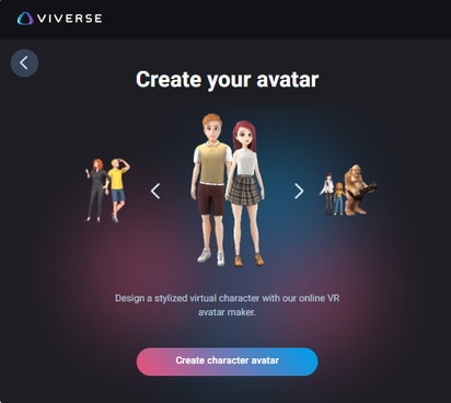 VIVERSE, you'll need to create an avatar. You can save up to 15 avatars on your HTC account.