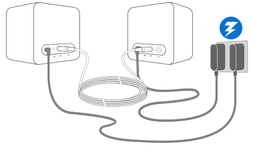 - Connectez les câbles d’alimentation aux stations de base, puis branchez-les chacun dans une prise secteur pour les allumer. Les lumières de statut doivent être vertes.