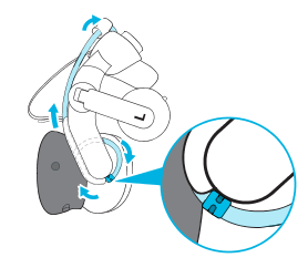 5. Loop the cable around the band of the strap next to it. The stopper on the headset cable should be positioned before the ridge. Make sure that the headset cable passes through the ridge and the cable clip at the back of the headset.