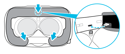 Вставьте соединительный кабель устройства в USB-порт типа C на шлеме.