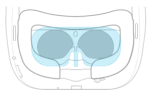 - Lagern Sie das Headset mit den Linsen außerhalb von direktem Sonnenlicht, wenn Sie es nicht verwenden. Anderenfalls könnte das Headset Display beschädigt werden.