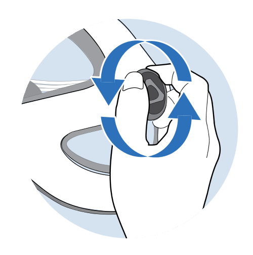 - Vor dem Tragen des Headsets lösen Sie den Riemen durch Drehen des Einstellrades gegen den Uhrzeigersinn.