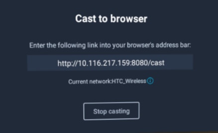An IP address with the following format will be displayed: http://[IP]:8080/cast