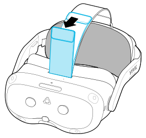 Position the headset over your eyes. While holding the Quick-Release Button, slide the headset band until snug with the back of your head.