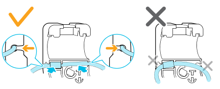 Sur la partie avant de la bande, appuyez le marqueur du câble audio dans la fente située au centre. Appuyez ensuite sur le câble le long de la rainure jusqu’à ce qu’il soit aligné avec la bande.