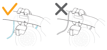 Assurez-vous que le câble audio passe sous la bande et non sur le dessus. Vérifiez qu’il n’est pas également coincé entre le clip et la bande.