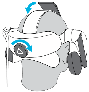 ヘッドセットがぴったり合うまで調整ダイヤルを時計回りに回し、ベルクロ留め具を上部バンドに再び取り付けます。