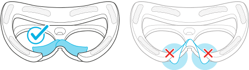 팁: 페이스 개스킷의 사전 장착된 쿠션과 완벽하게 맞지 않는 경우, 상자에 있는 다른 쿠션으로 교체해보세요. VIVE XR 시리즈 디럭스 패키지에서 액세서리 목록을 확인하세요.