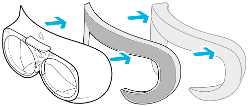 메모: 개스킷 스페이서는 편안함을 추가로 제공하기 위해 포함될 수 있지만, 시야를 가리거나 헤드셋에 빛이 새어 들어오는 경우 제거할 수 있습니다.