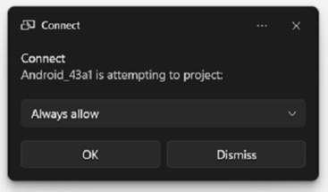 في تطبيق اتصال Windows، اختر السماح بالعرض الضوئي إلى الكمبيوتر، ثم انقر على موافق.