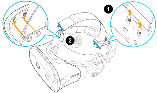 - Reattach the front and back pads to the headset. For details, see Reattaching the front and back pads to the headset.