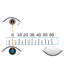 Check the millimeter mark on the other eye. You may need to close the first eye to get a clear measure.