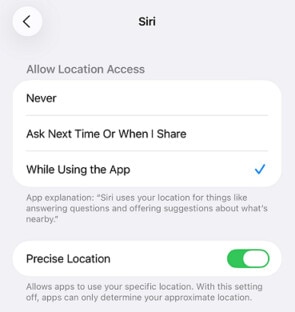 While Using the App is selected and