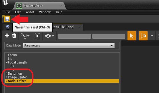 Content Browser panel, double-click the Lens File asset to open the Lens File Asset Editor.