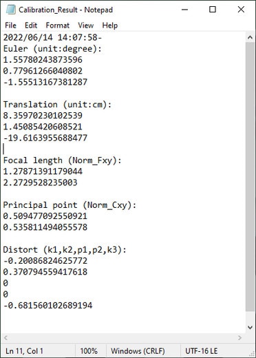 Double-click the file to open it and view the calibration data. Keep the file open for reference.