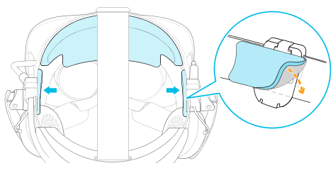 Reattach the front pad and side cushions to the headset band. Make sure that the side cushions cover the metal clasps on the band.